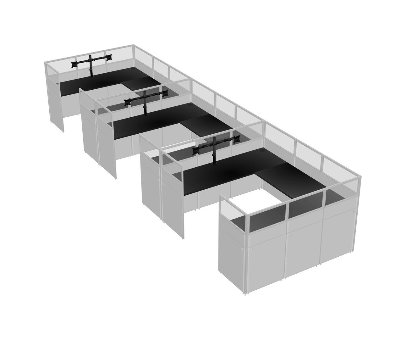 Black U-shaped Panel System For 3 Person + Monitor Arm (double Arms) For 3 User(s)