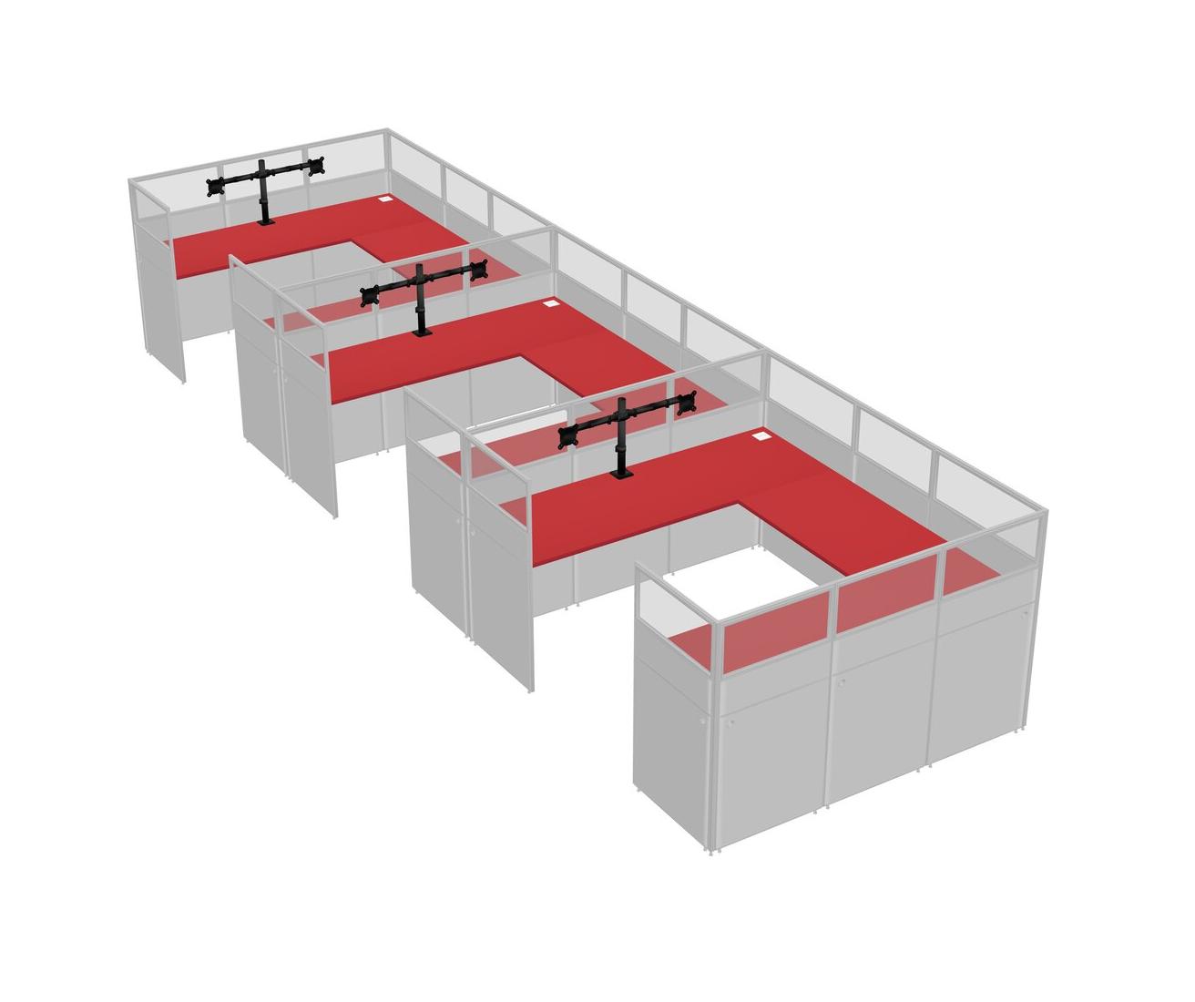 Prism Red U-shaped Panel System For 3 Person + Monitor Arm (double Arms) For 3 User(s)