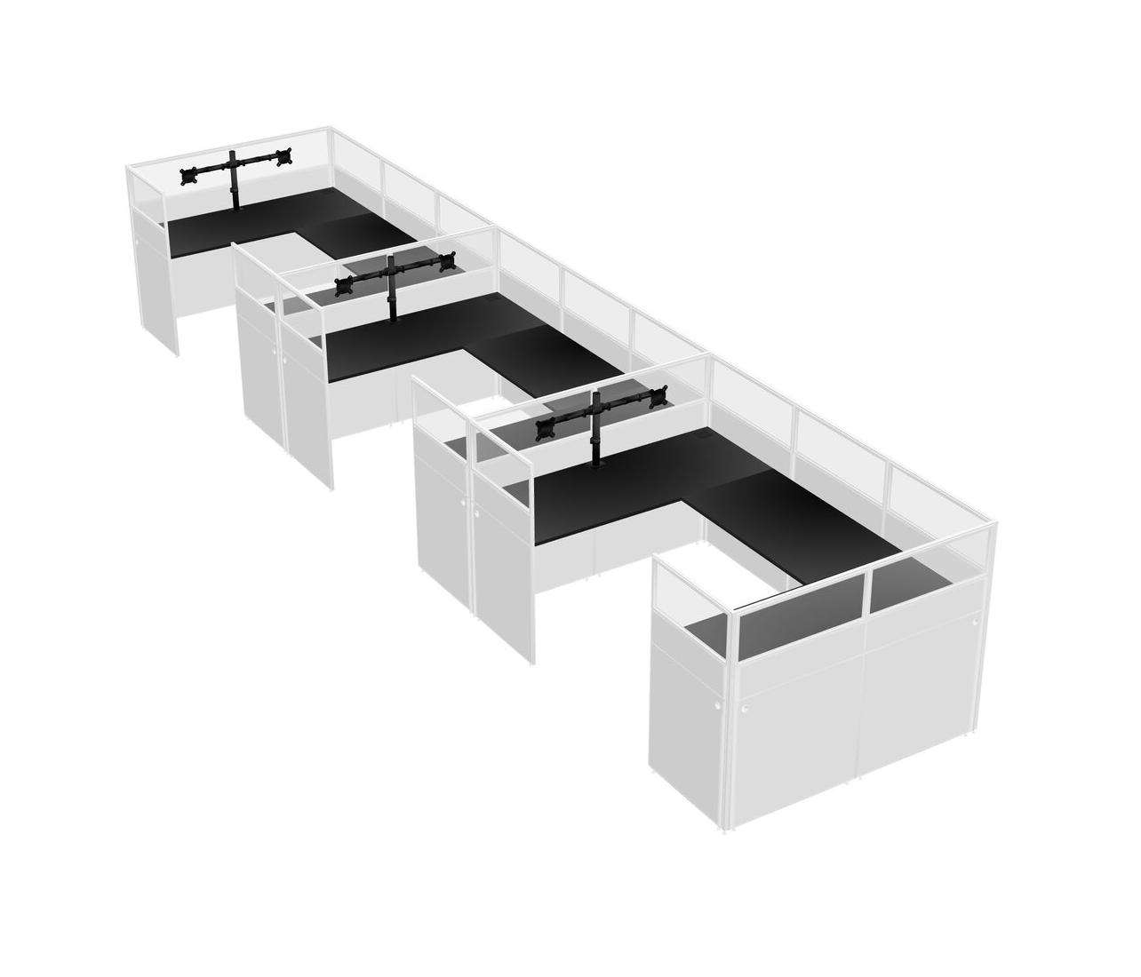 Black U-shaped Panel System For 3 Person + Monitor Arm (double Arms) For 3 User(s)