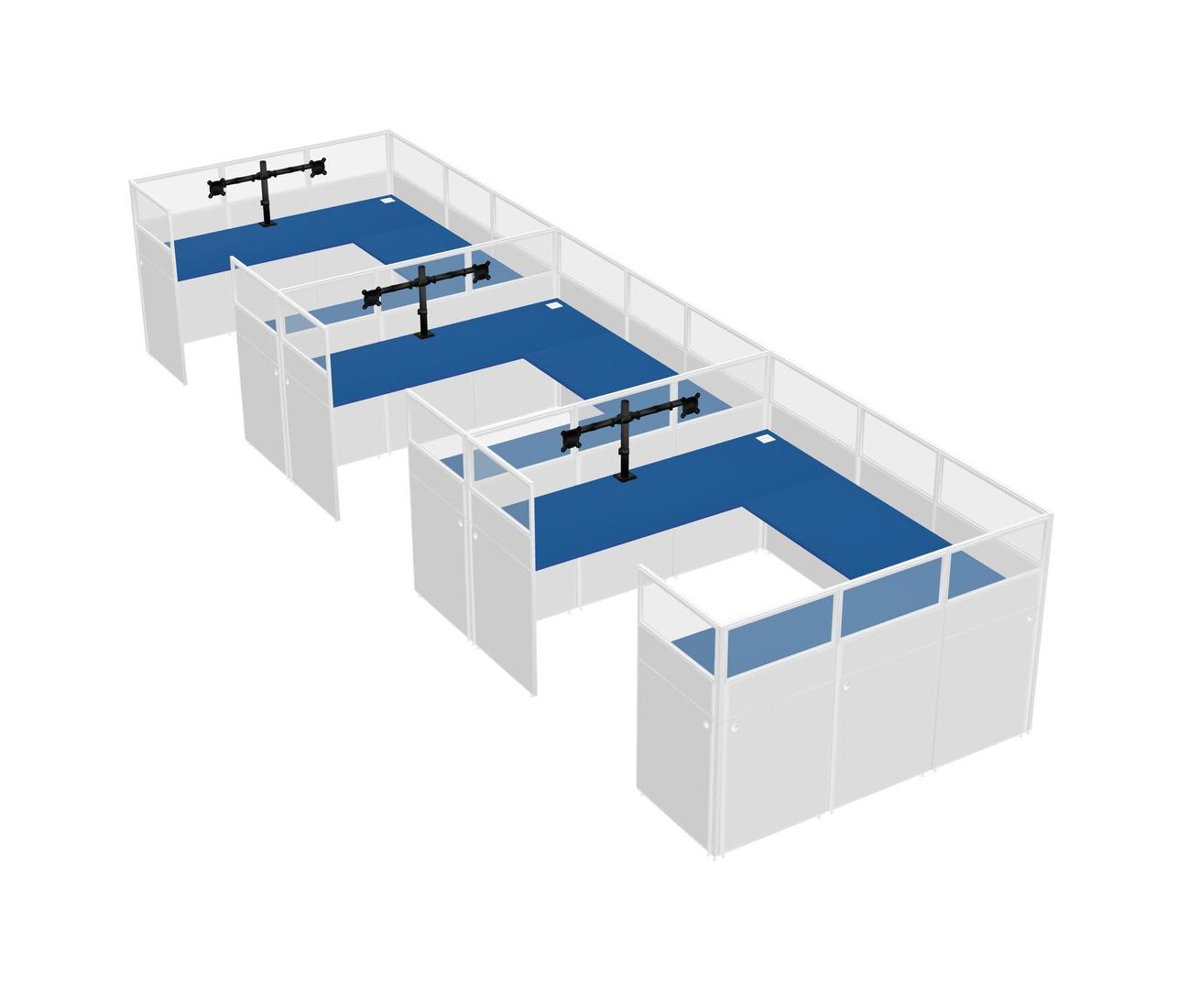 Prism Blue U-shaped Panel System For 3 Person + Monitor Arm (double Arms) For 3 User(s)