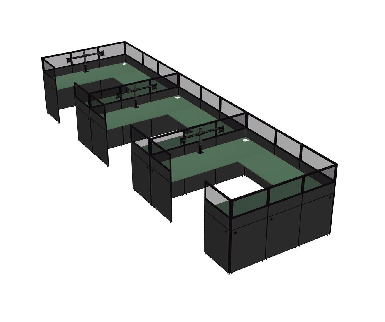 Green U-shaped Panel System For 3 Person + Monitor Arm (double Arms) For 3 User(s)