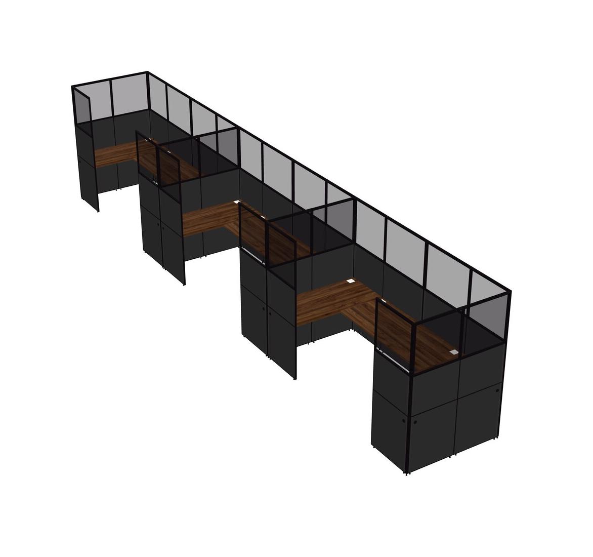 Columbia Walnut U-shaped Panel System For 3 Person For 3 User(s)