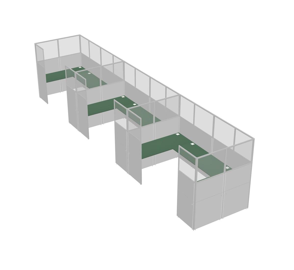 Green U-shaped Panel System For 3 Person For 3 User(s)
