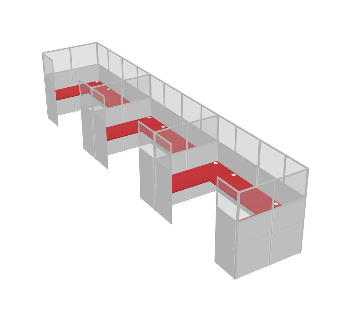 Prism Red U-shaped Panel System For 3 Person For 3 User(s)