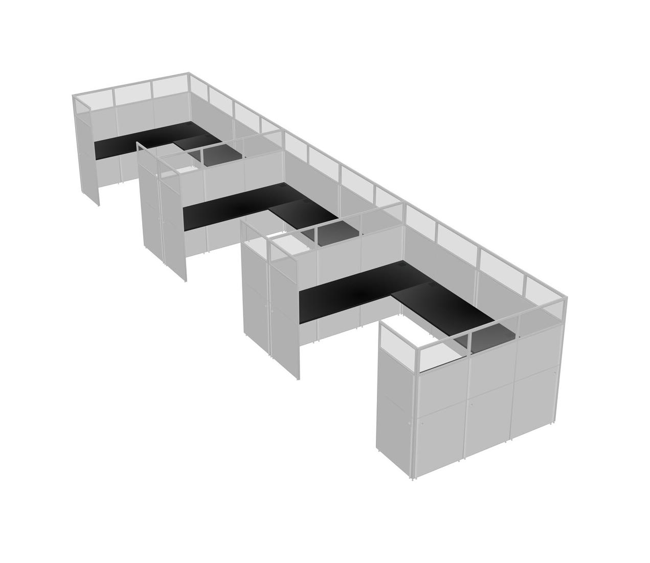 Black U-shaped Panel System For 3 Person For 3 User(s)