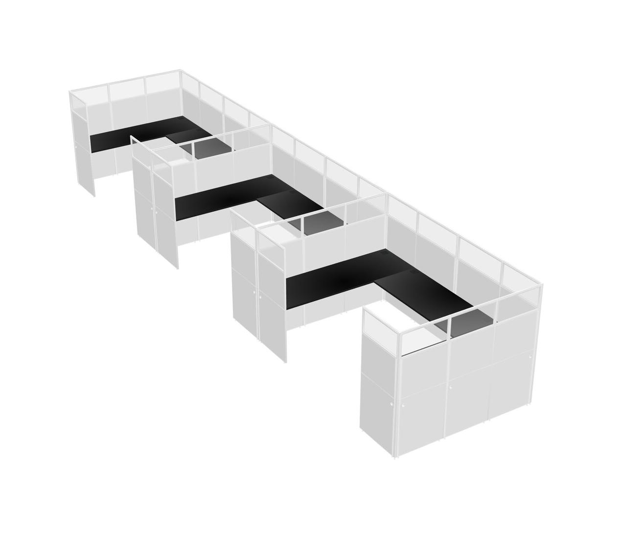 Black U-shaped Panel System For 3 Person For 3 User(s)