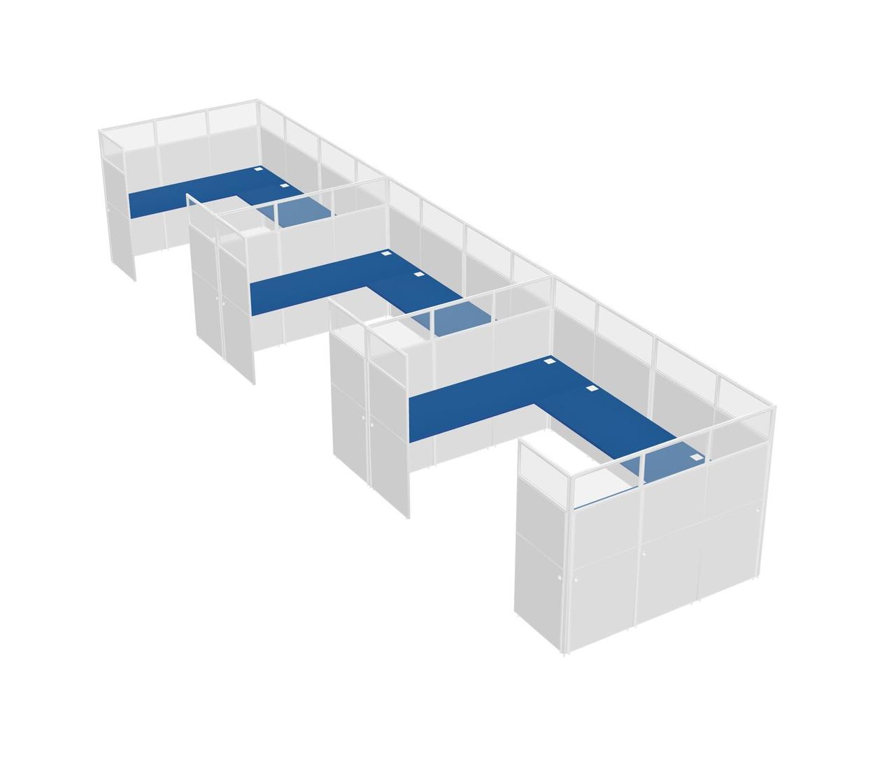 Prism Blue U-shaped Panel System For 3 Person For 3 User(s)