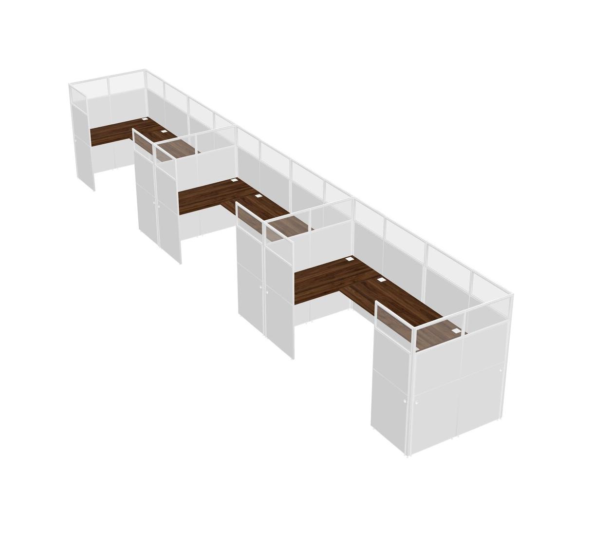 Columbia Walnut U-shaped Panel System For 3 Person For 3 User(s)