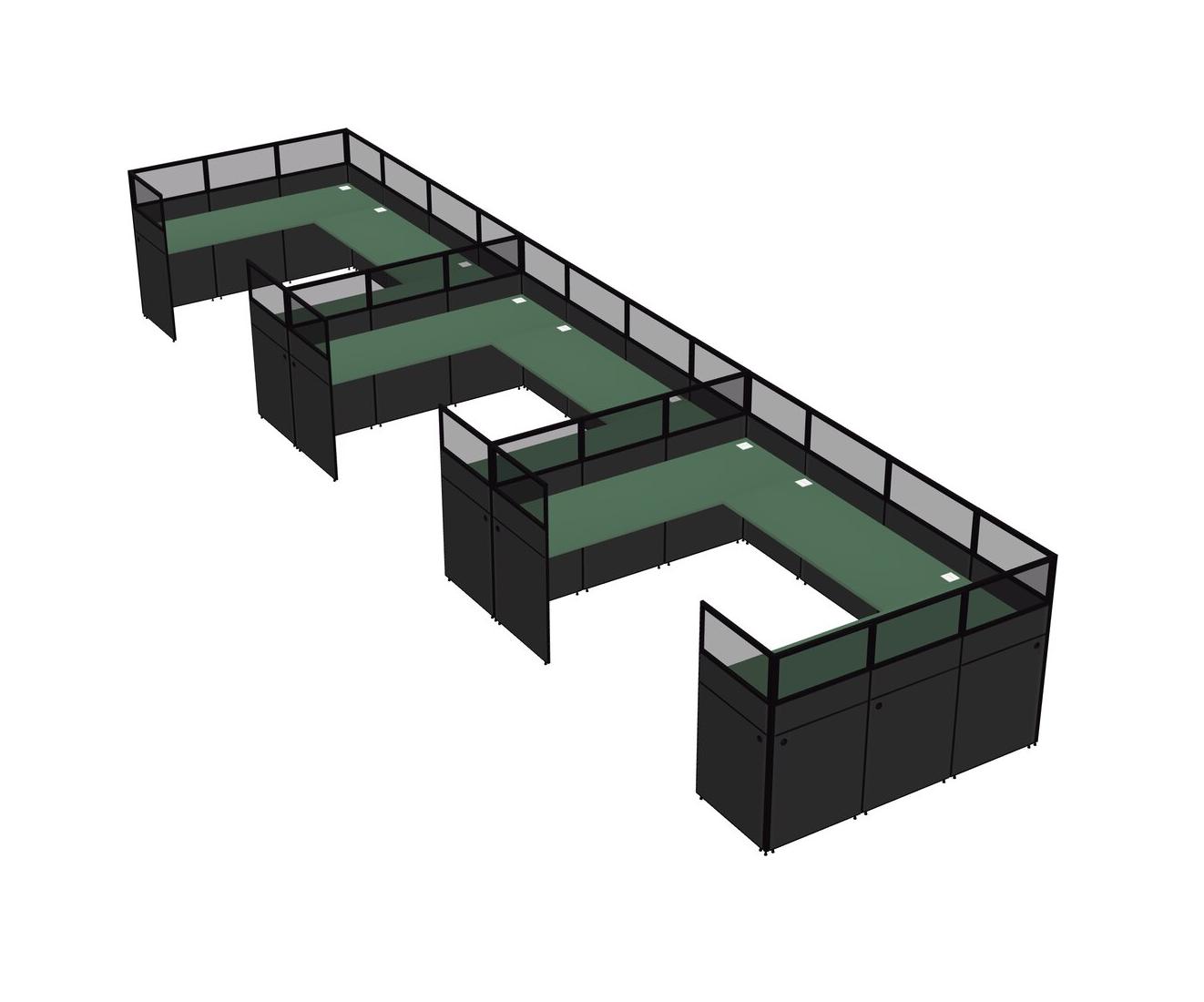 Green U-shaped Panel System For 3 Person For 3 User(s)