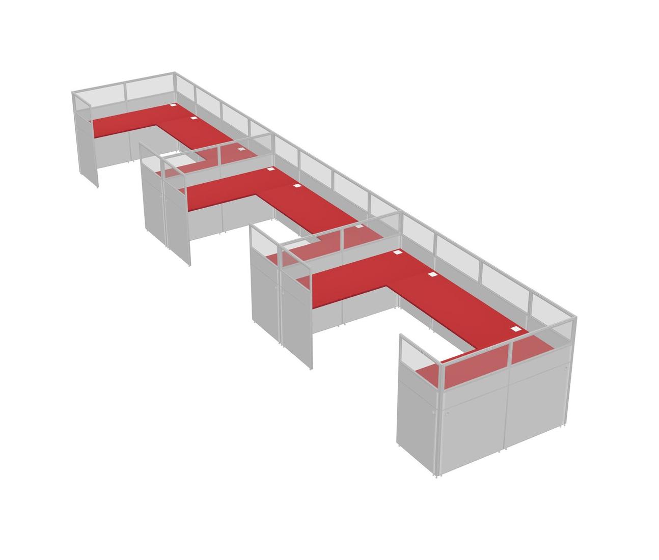 Prism Red U-shaped Panel System For 3 Person For 3 User(s)