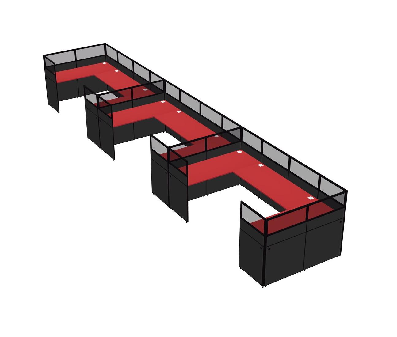 Prism Red U-shaped Panel System For 3 Person For 3 User(s)