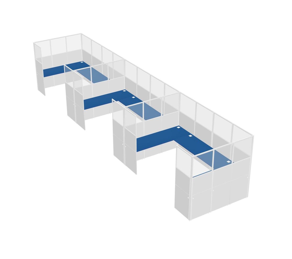Prism Blue U-shaped Panel System For 3 Person For 3 User(s)