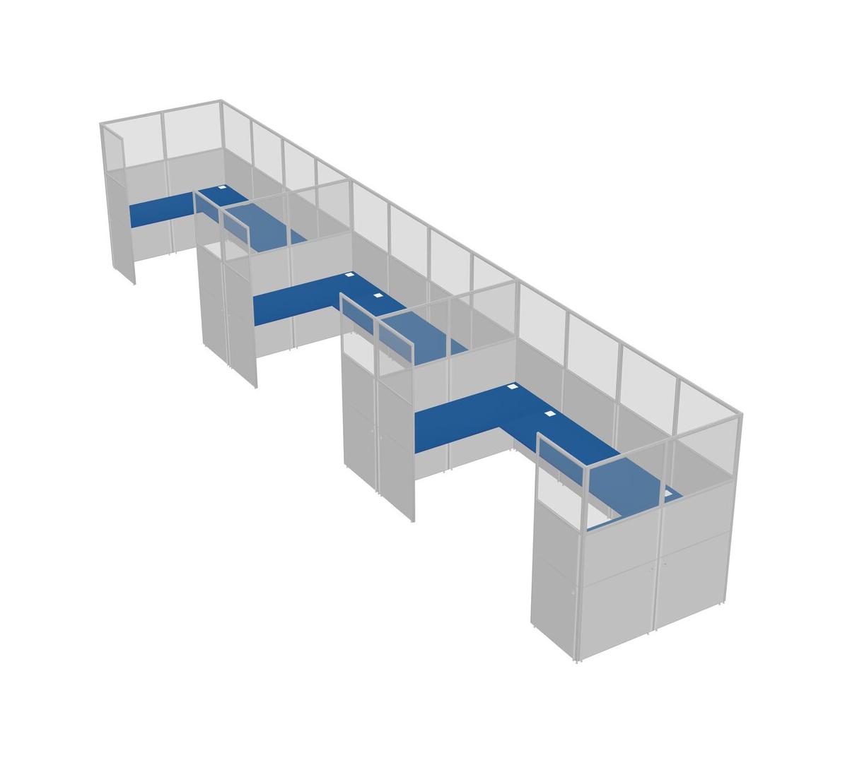 Prism Blue U-shaped Panel System For 3 Person For 3 User(s)