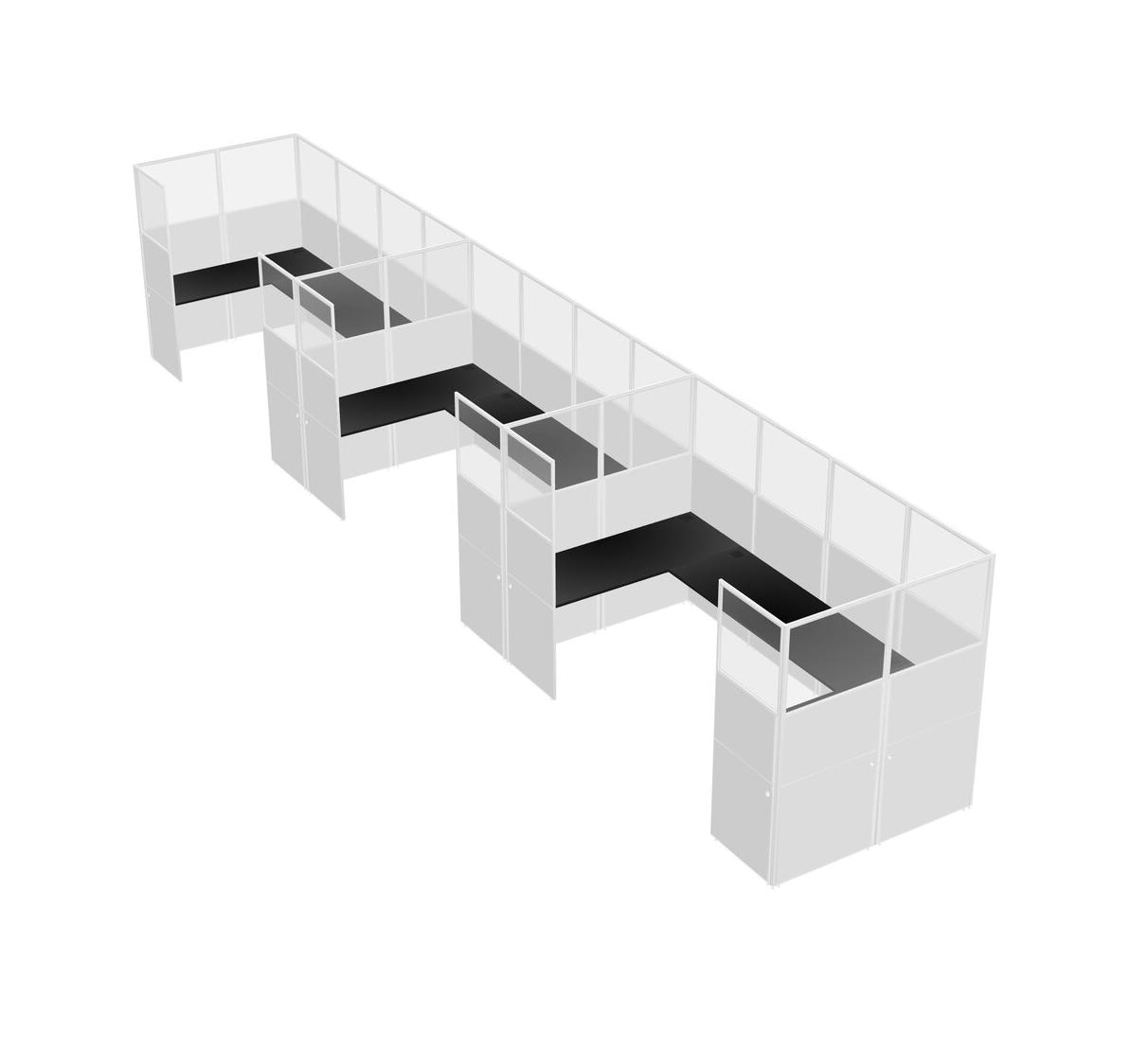 Black U-shaped Panel System For 3 Person For 3 User(s)