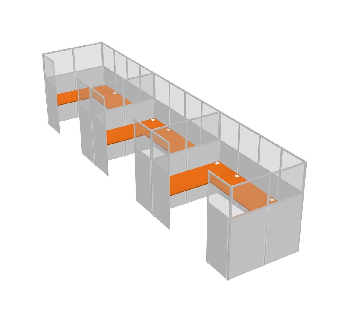 Orange U-shaped Panel System For 3 Person For 3 User(s)