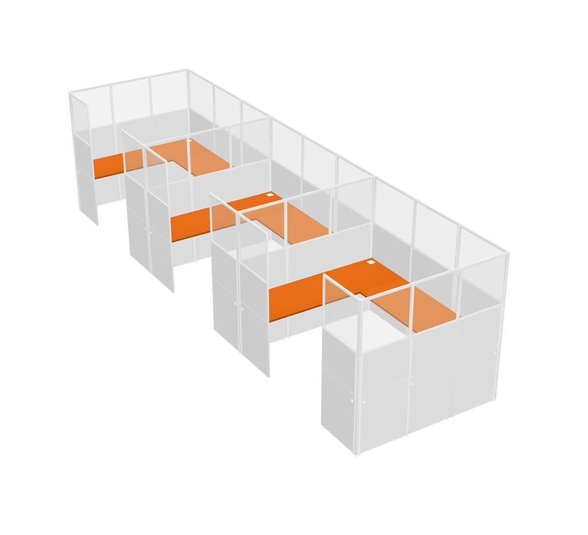 Orange U-shaped Panel System For 3 Person For 3 User(s)