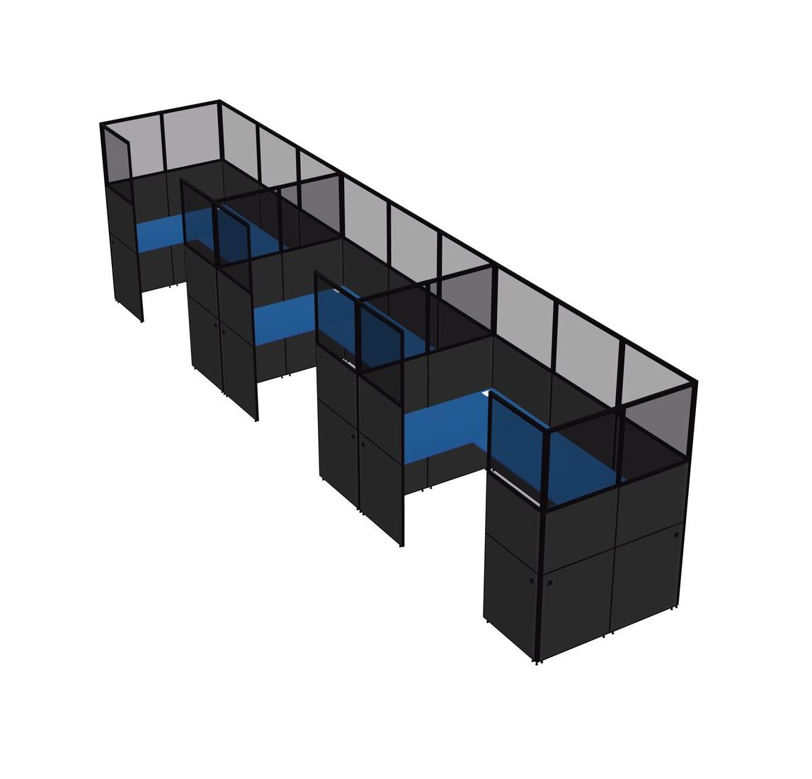 Prism Blue U-shaped Panel System For 3 Person For 3 User(s)