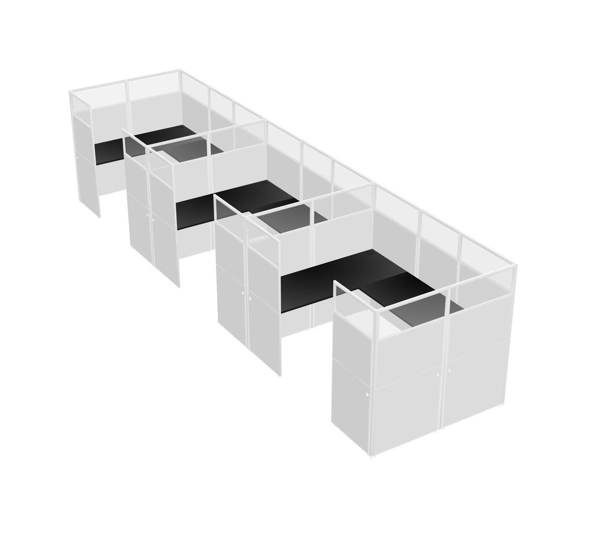 Black U-shaped Panel System For 3 Person For 3 User(s)