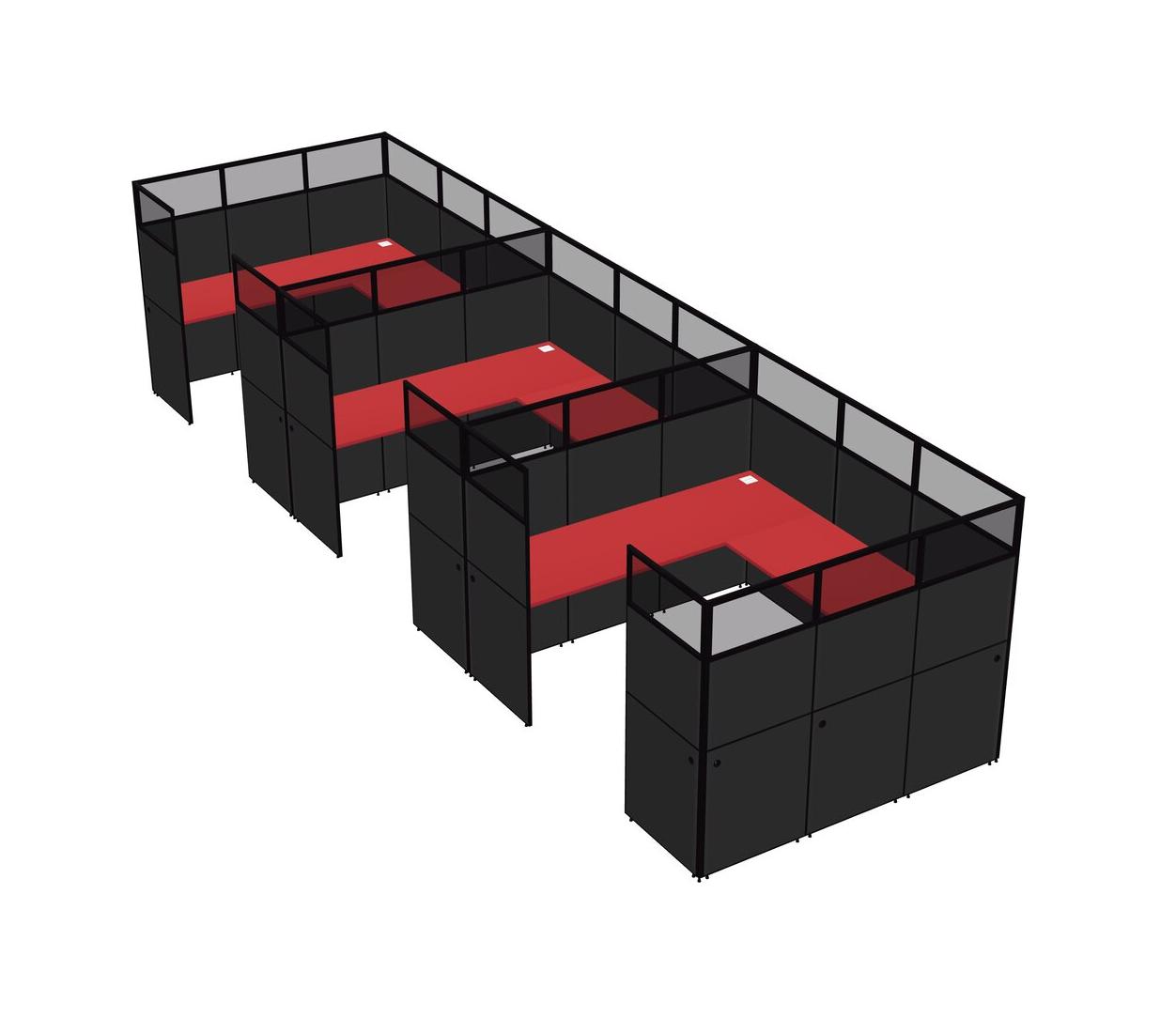 Prism Red U-shaped Panel System For 3 Person For 3 User(s)