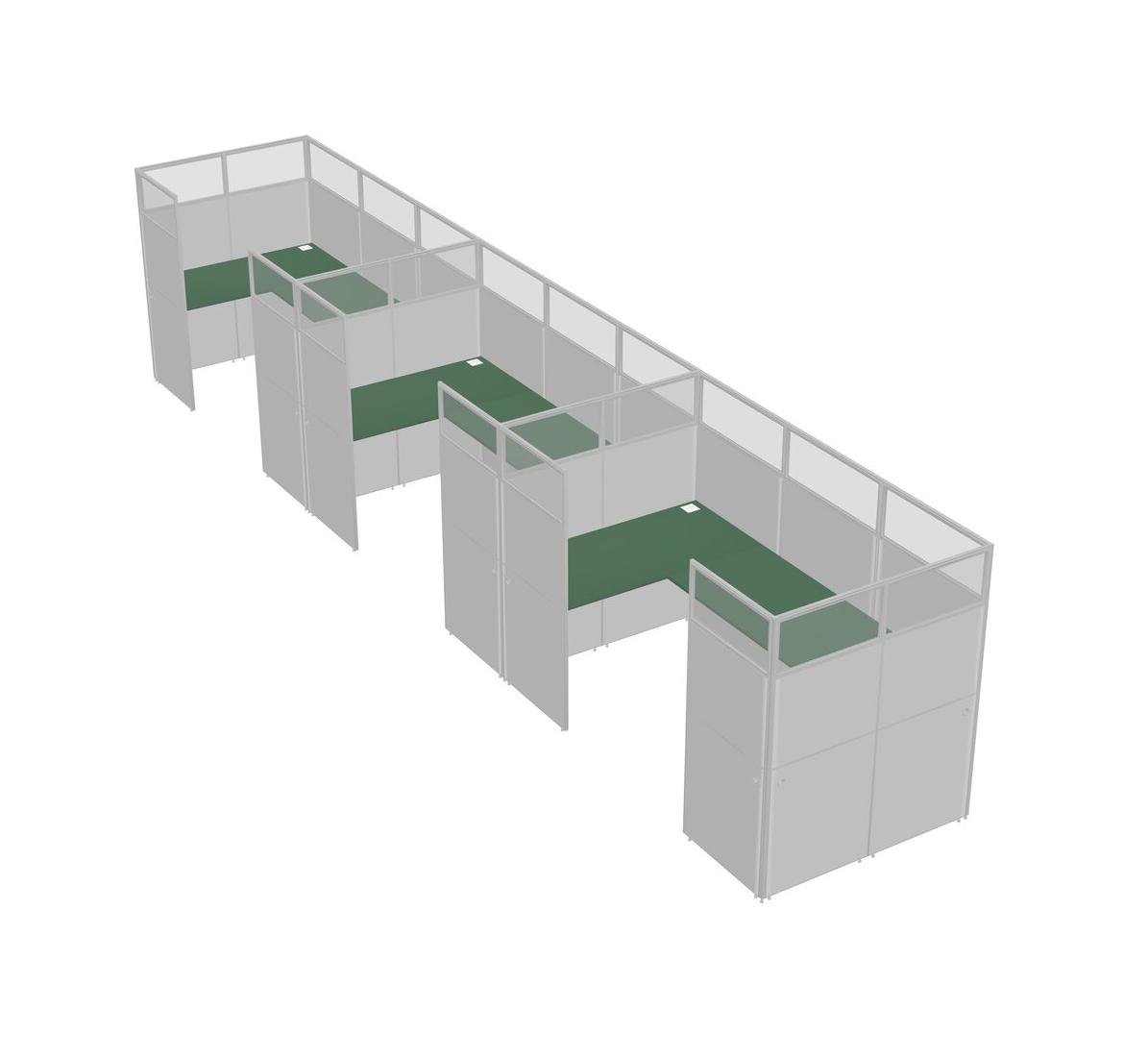 Green U-shaped Panel System For 3 Person For 3 User(s)