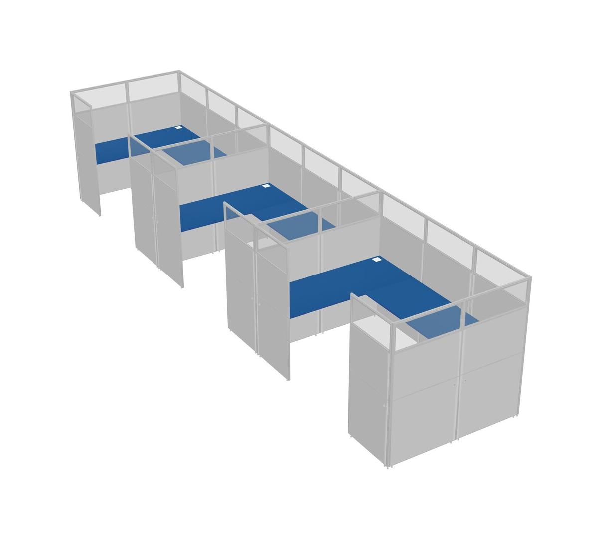 Prism Blue U-shaped Panel System For 3 Person For 3 User(s)