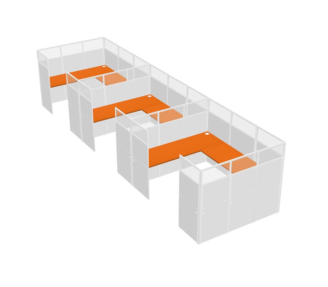 Orange U-shaped Panel System For 3 Person For 3 User(s)