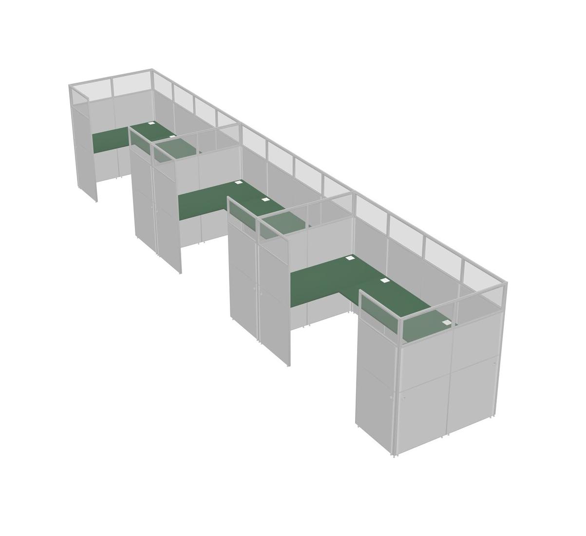 Green U-shaped Panel System For 3 Person For 3 User(s)