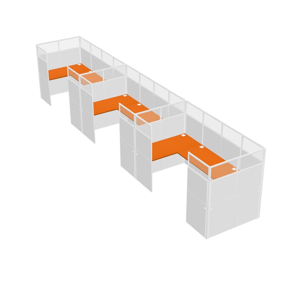 Orange U-shaped Panel System For 3 Person For 3 User(s)