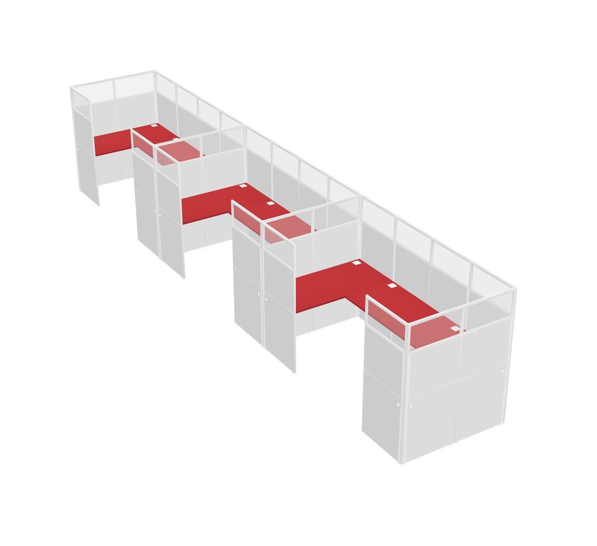 Prism Red U-shaped Panel System For 3 Person For 3 User(s)