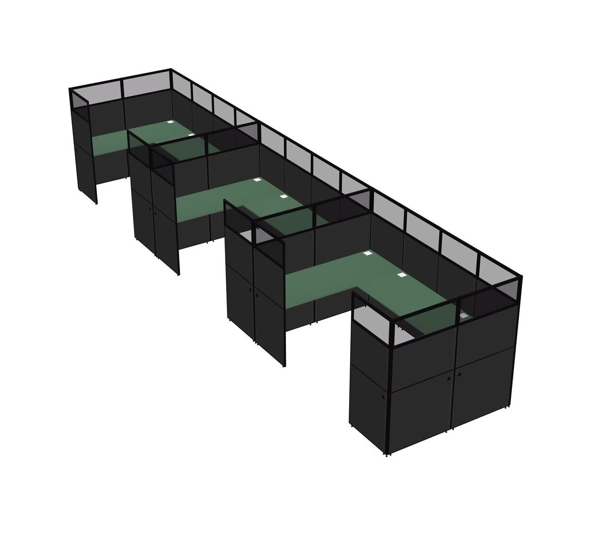 Green U-shaped Panel System For 3 Person For 3 User(s)