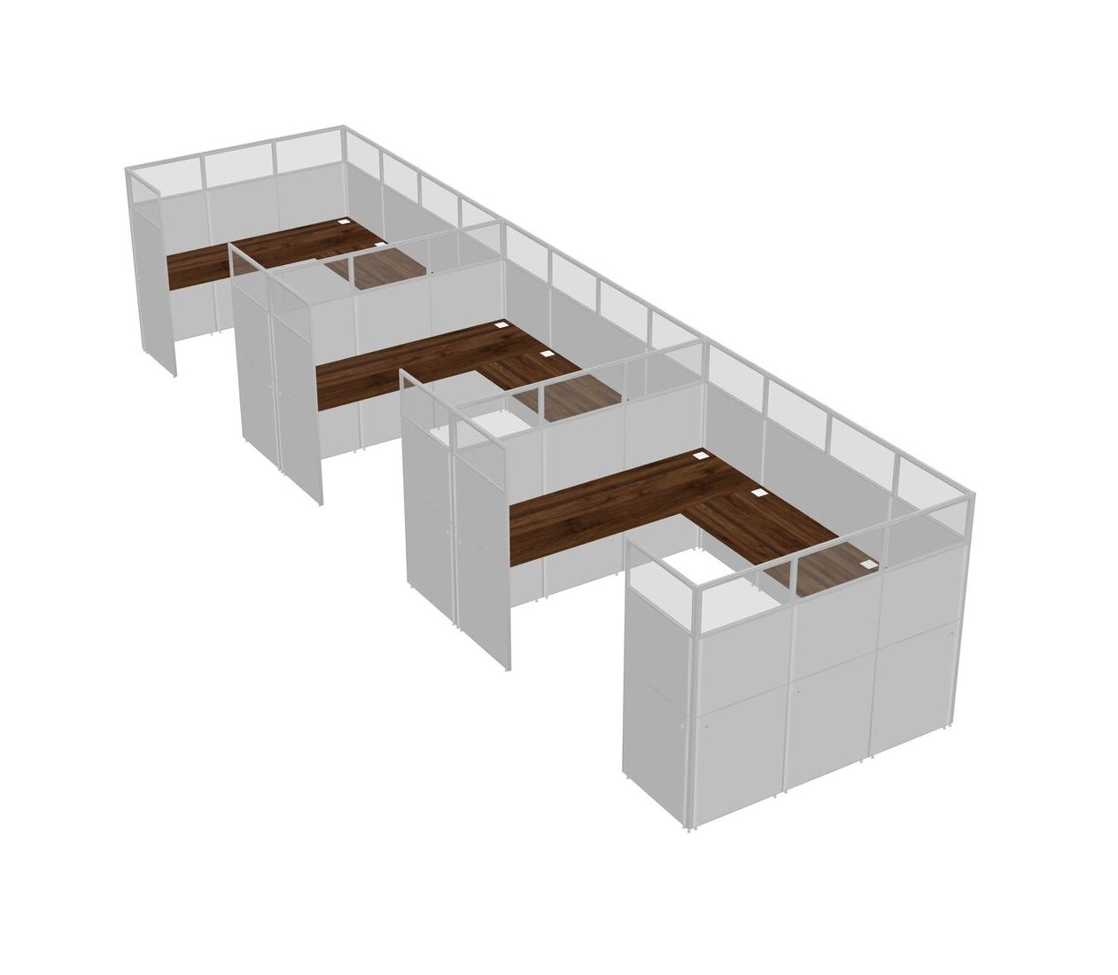 Columbia Walnut U-shaped Panel System For 3 Person For 3 User(s)
