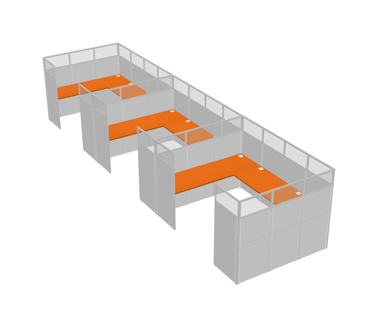 Orange U-shaped Panel System For 3 Person For 3 User(s)
