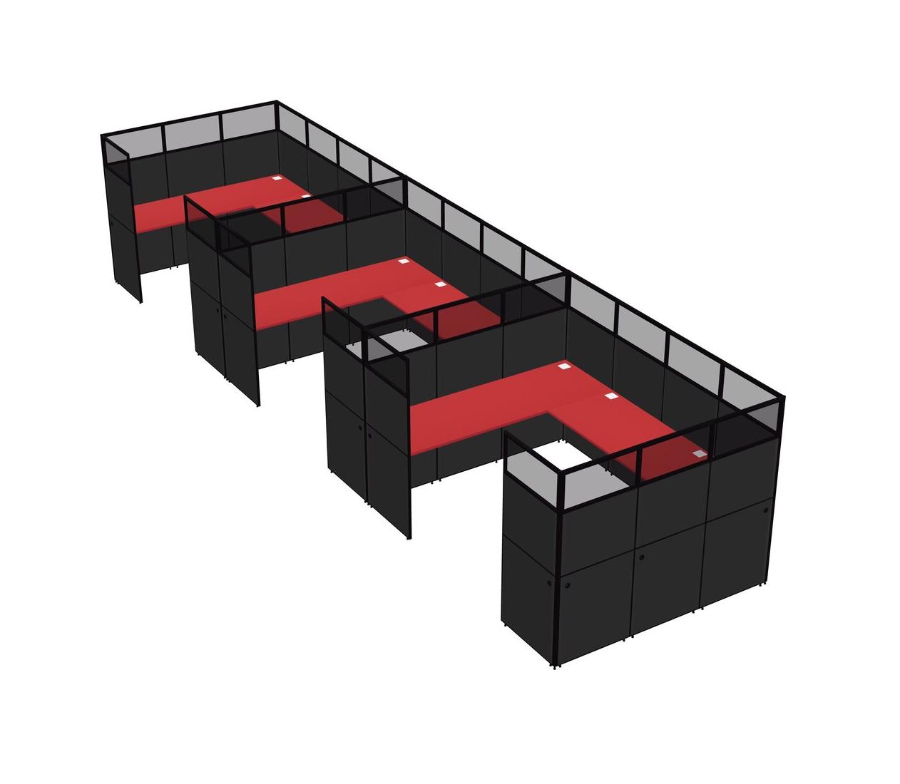 Prism Red U-shaped Panel System For 3 Person For 3 User(s)