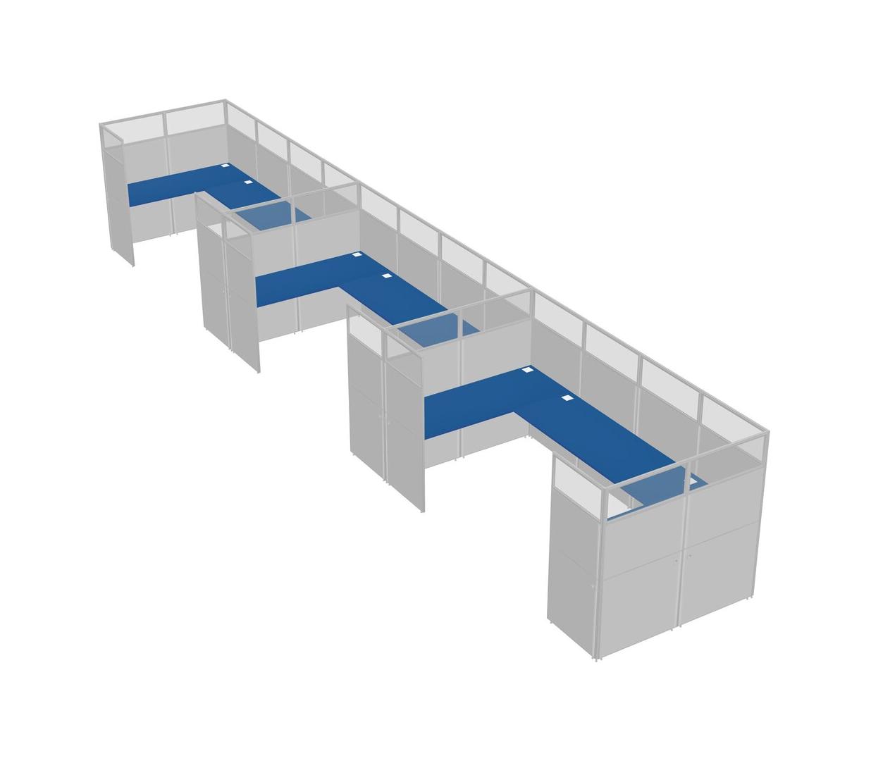 Prism Blue U-shaped Panel System For 3 Person For 3 User(s)