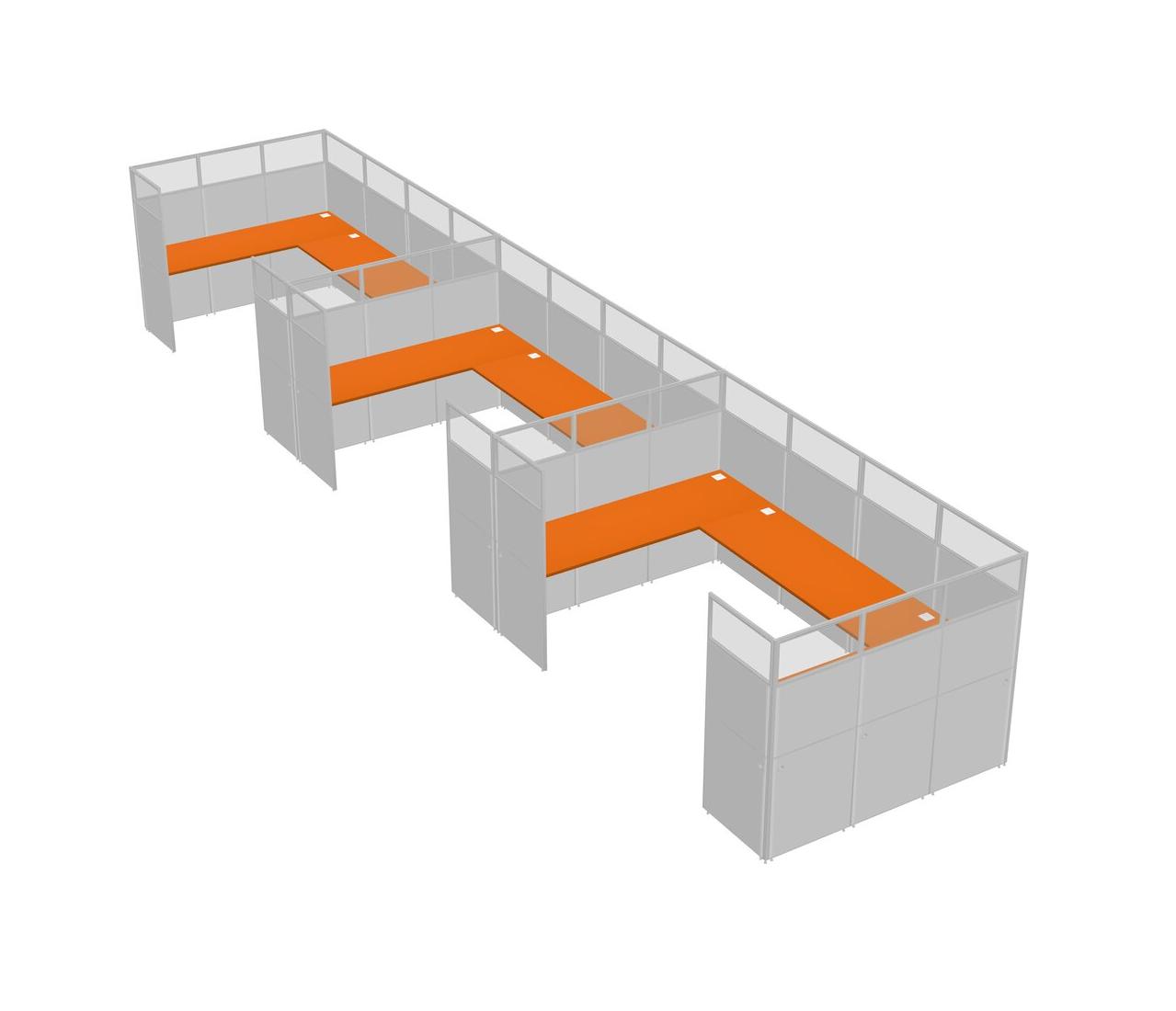 Orange U-shaped Panel System For 3 Person For 3 User(s)