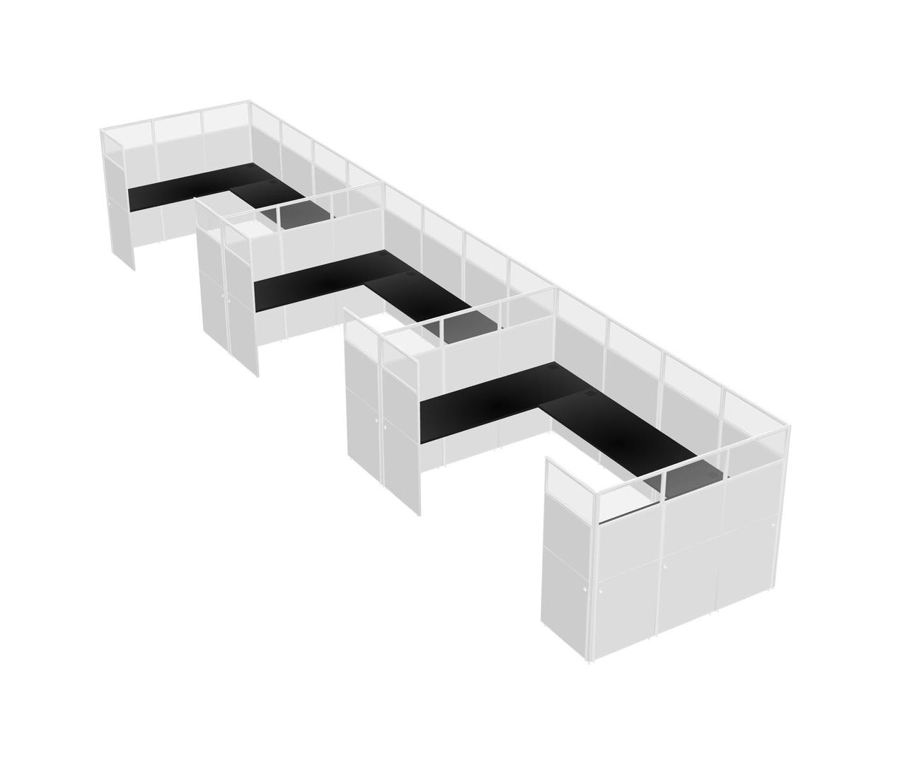 Black U-shaped Panel System For 3 Person For 3 User(s)