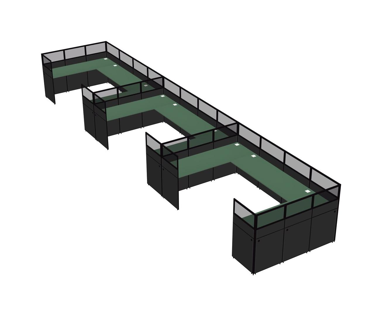 Green U-shaped Panel System For 3 Person For 3 User(s)