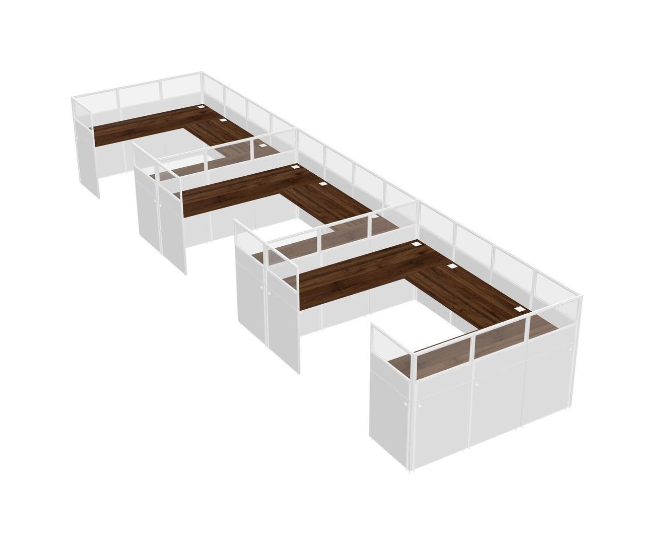 Columbia Walnut U-shaped Panel System For 3 Person For 3 User(s)