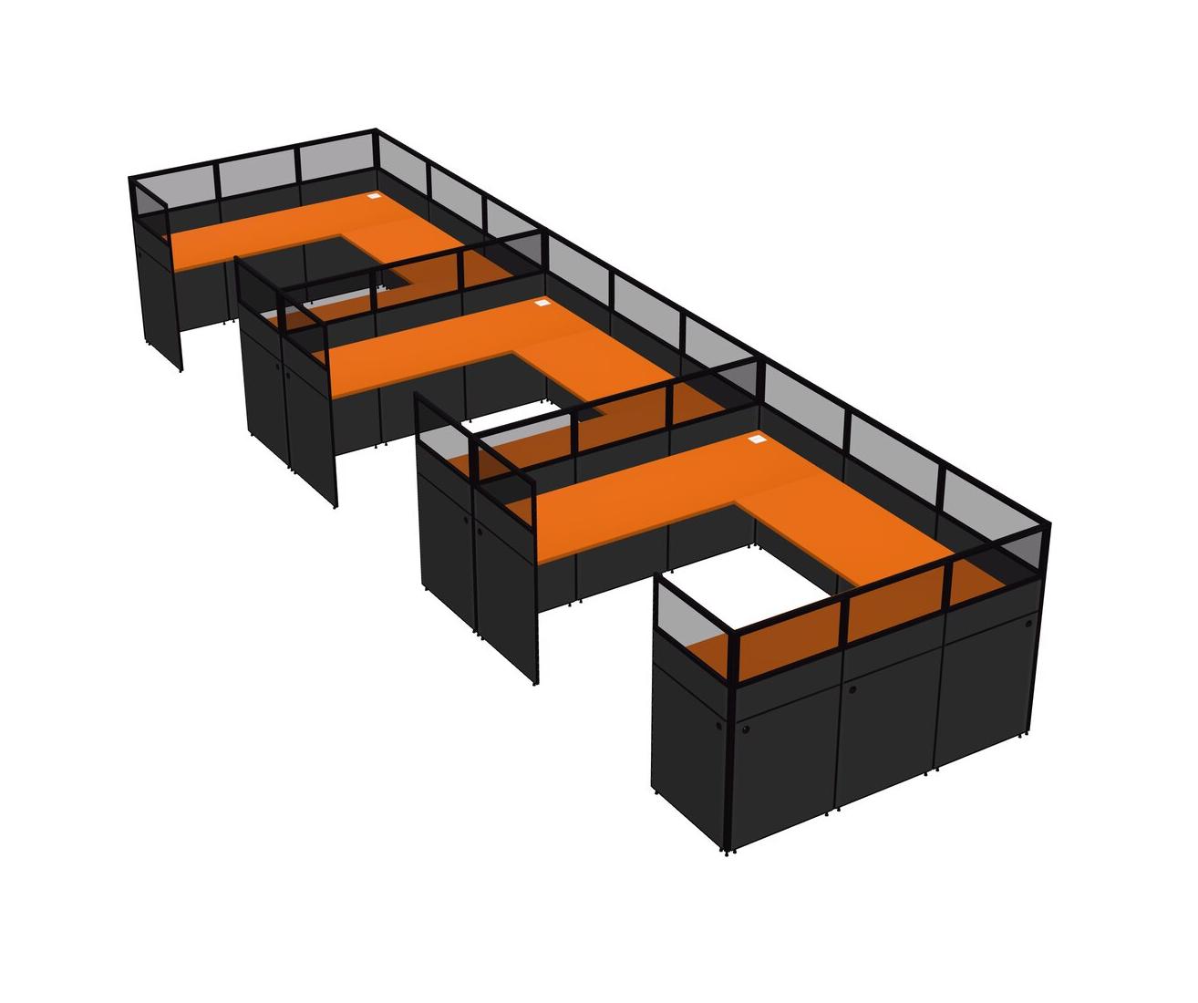 Orange U-shaped Panel System For 3 Person For 3 User(s)