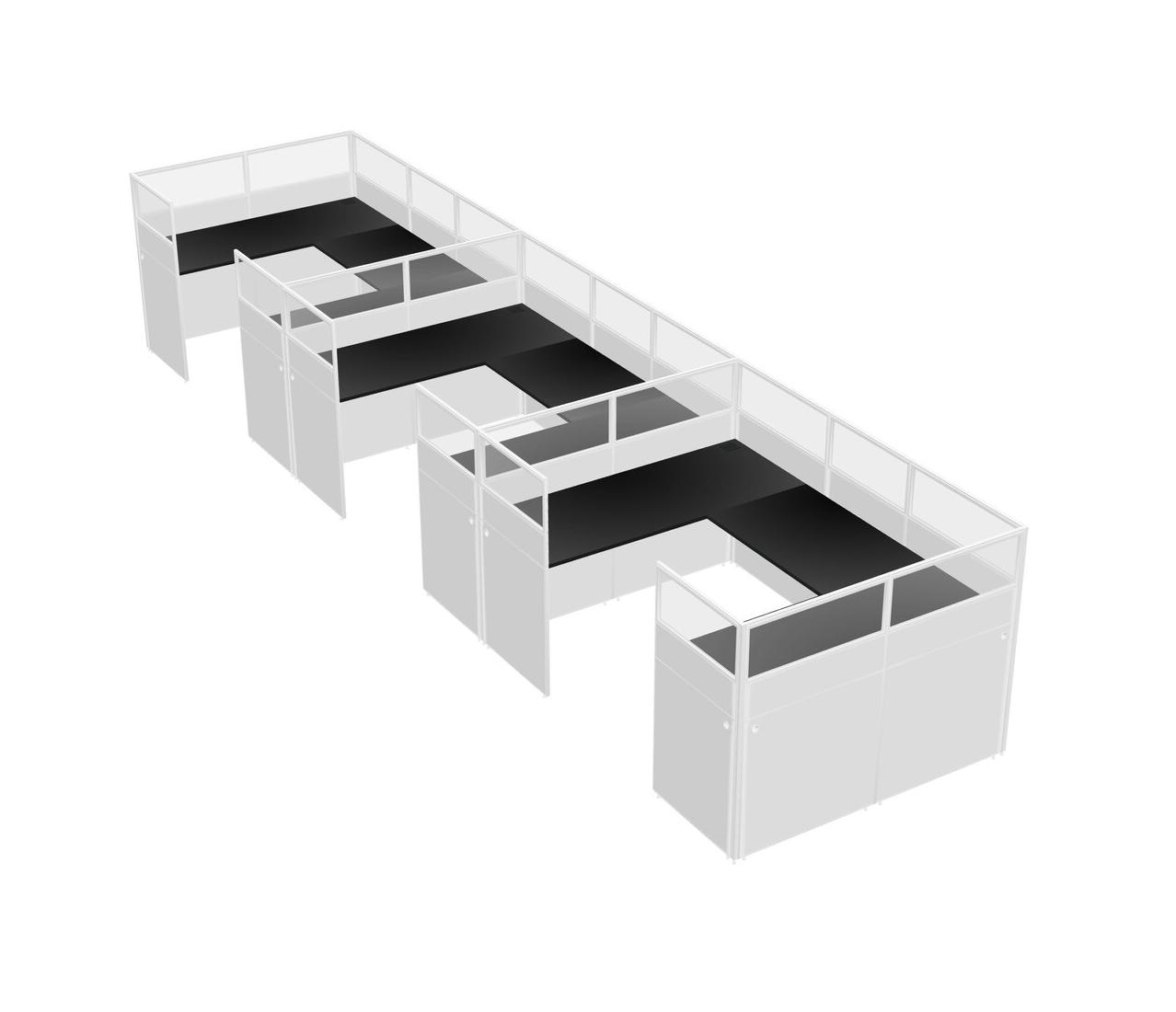 Black U-shaped Panel System For 3 Person For 3 User(s)
