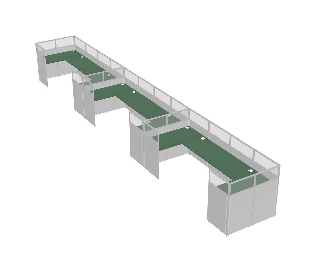 Green U-shaped Panel System For 3 Person For 3 User(s)