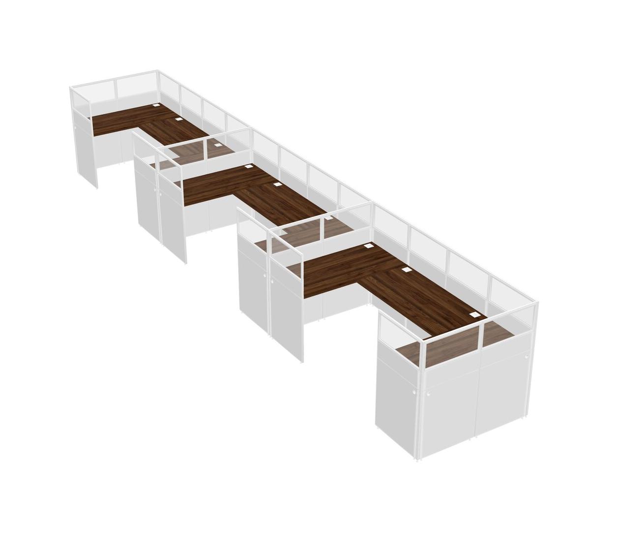 Columbia Walnut U-shaped Panel System For 3 Person For 3 User(s)