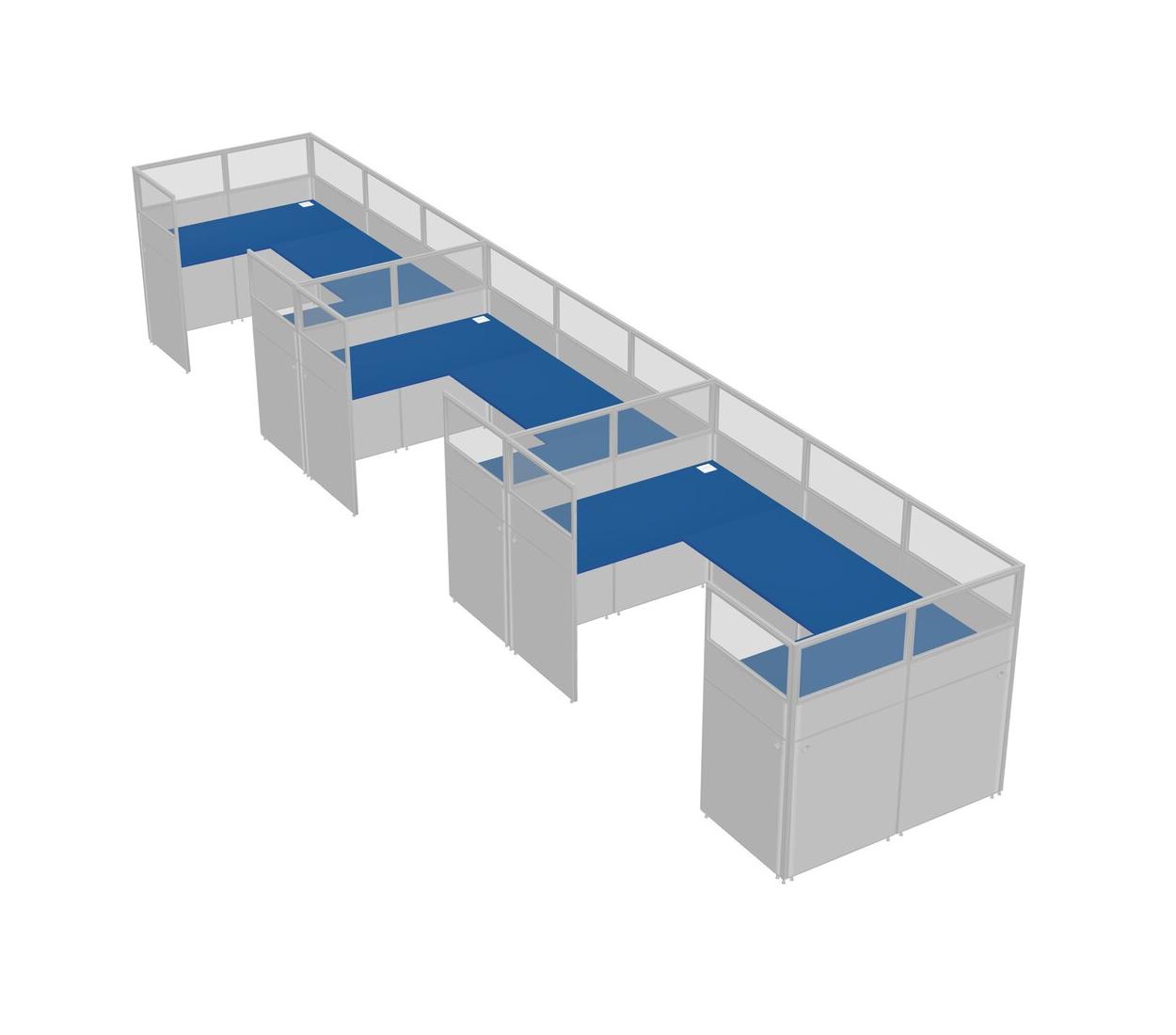 Prism Blue U-shaped Panel System For 3 Person For 3 User(s)