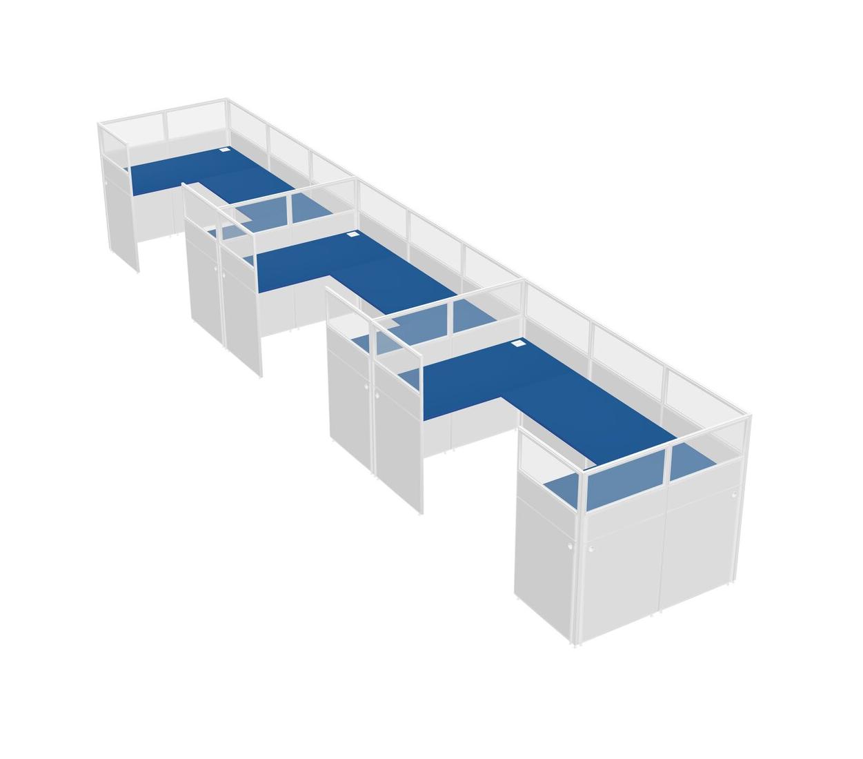 Prism Blue U-shaped Panel System For 3 Person For 3 User(s)
