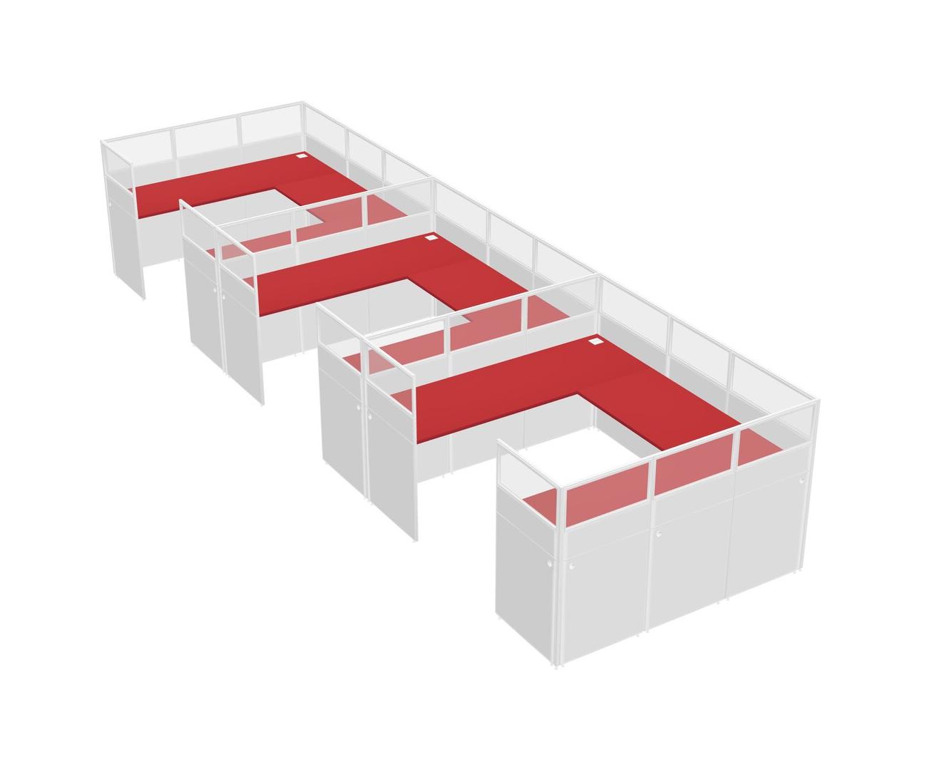 Prism Red U-shaped Panel System For 3 Person For 3 User(s)