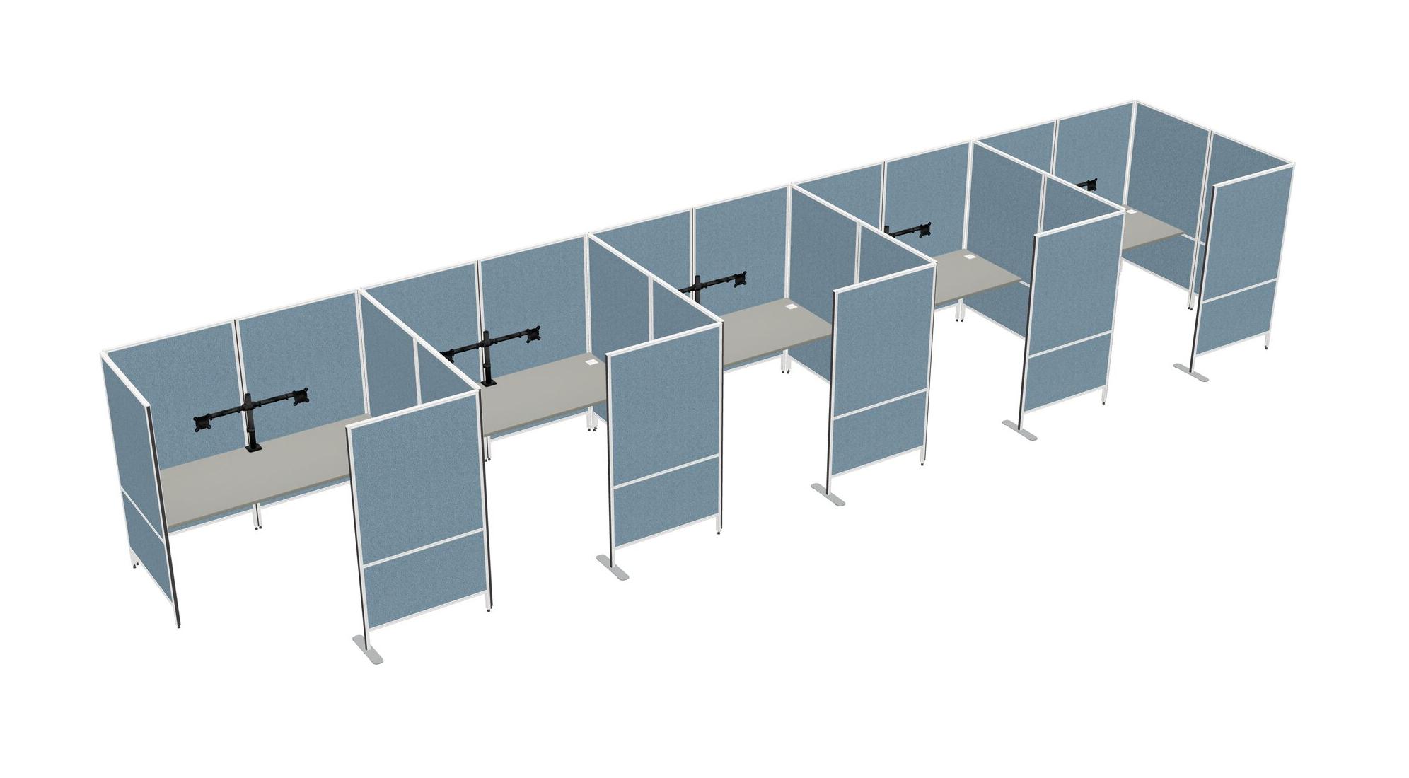 Grey Shadows Flexible Panel System With Privacy For 5 + Monitor Arm (double Arms)