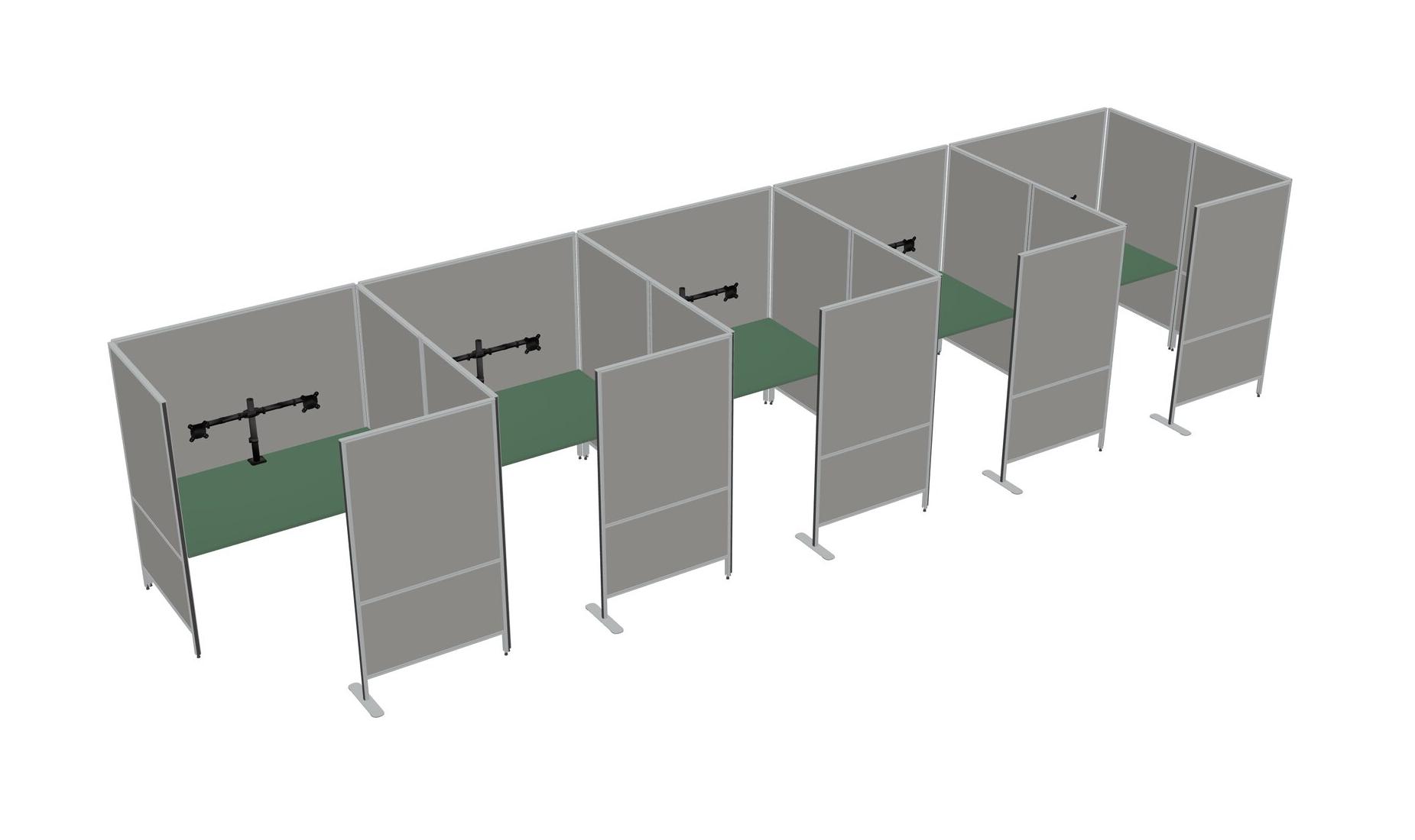 Green Flexible Panel System With Privacy For 5 + Monitor Arm (double Arms)