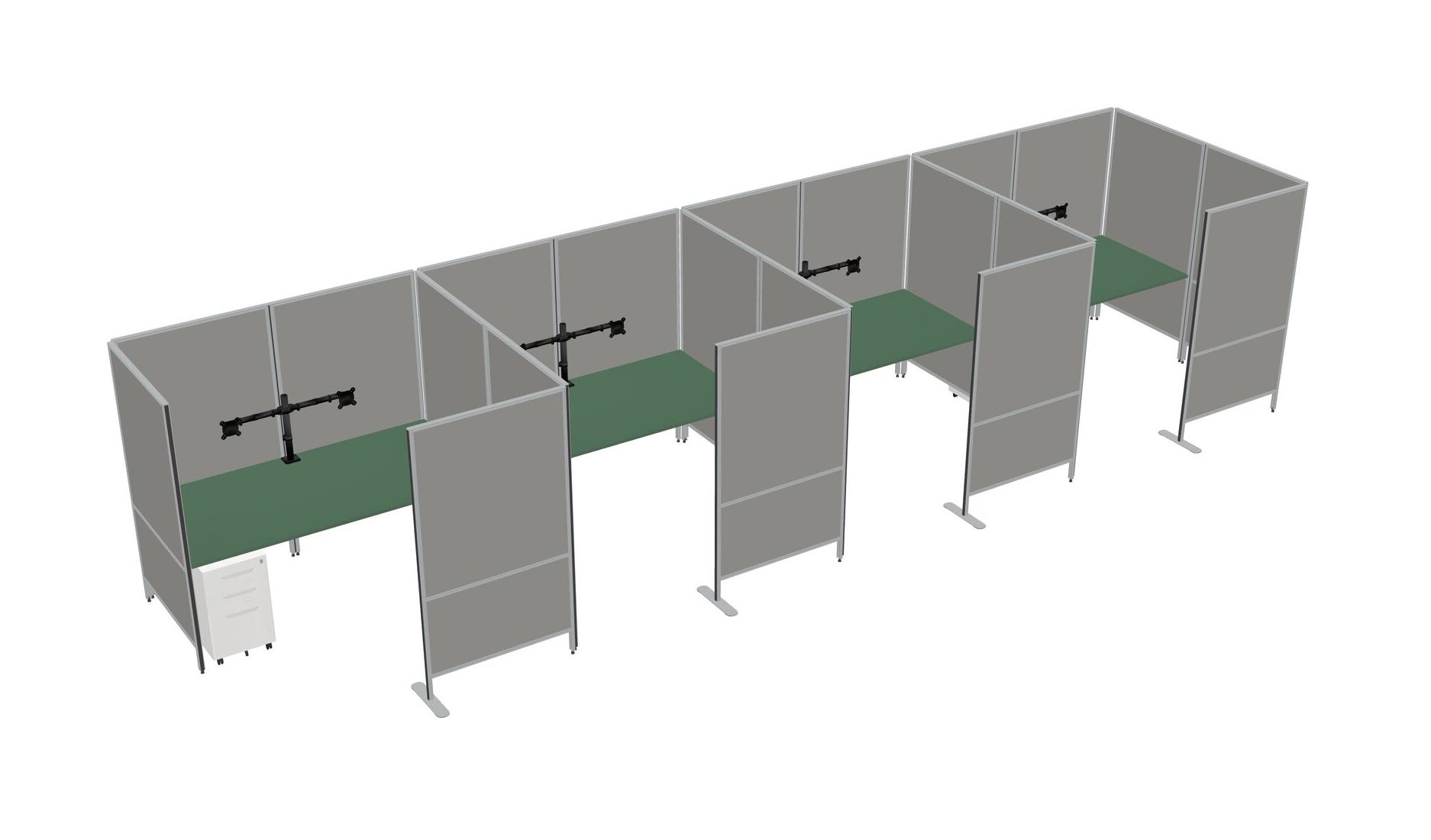 Green Flexible Panel System With Privacy For 4 + Metal Mobile Drawers + Monitor Arm (double Arms)