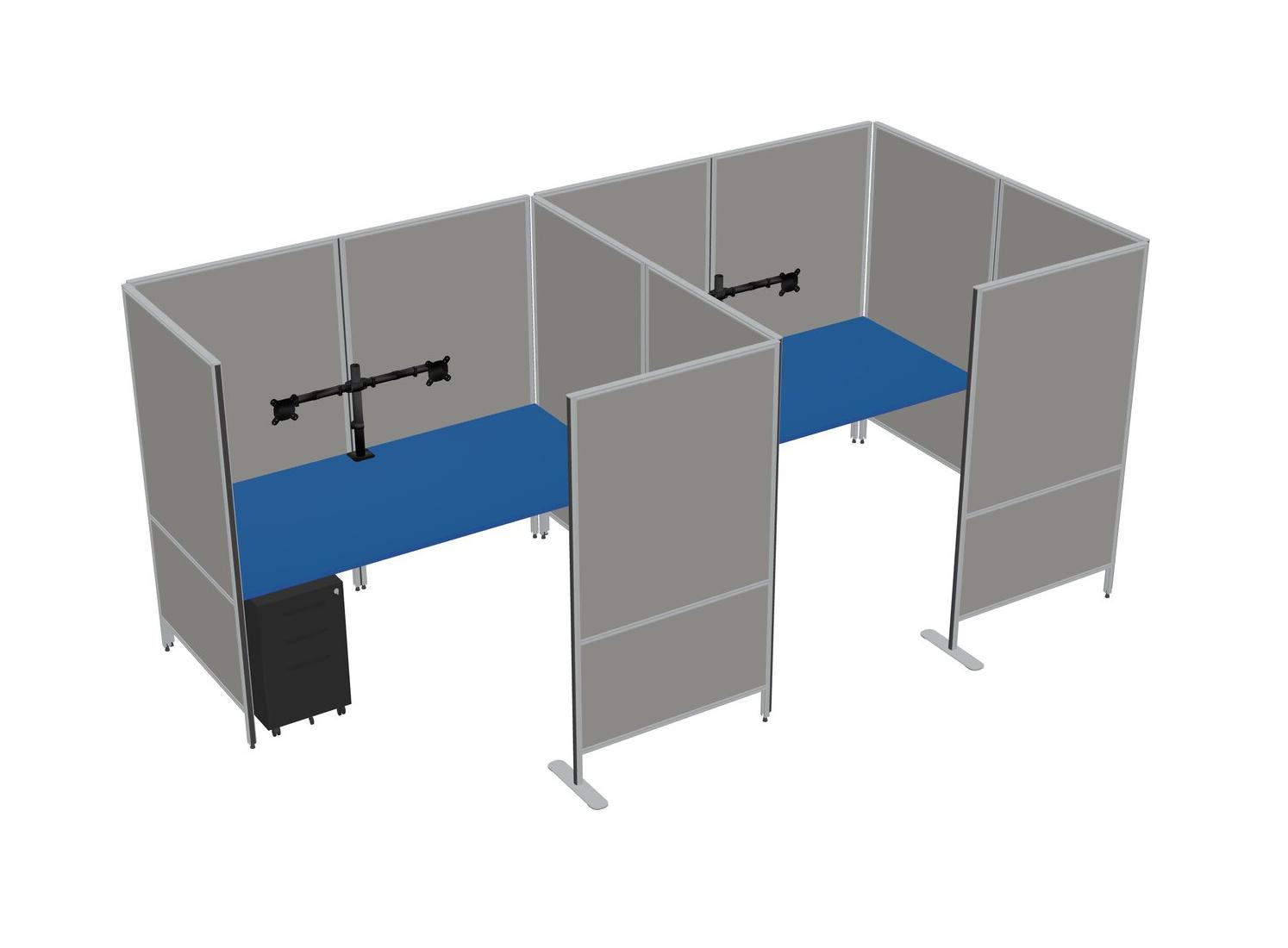 Prism Blue Flexible Panel System With Privacy For 2 + Metal Mobile Drawers + Monitor Arm (double Arms)