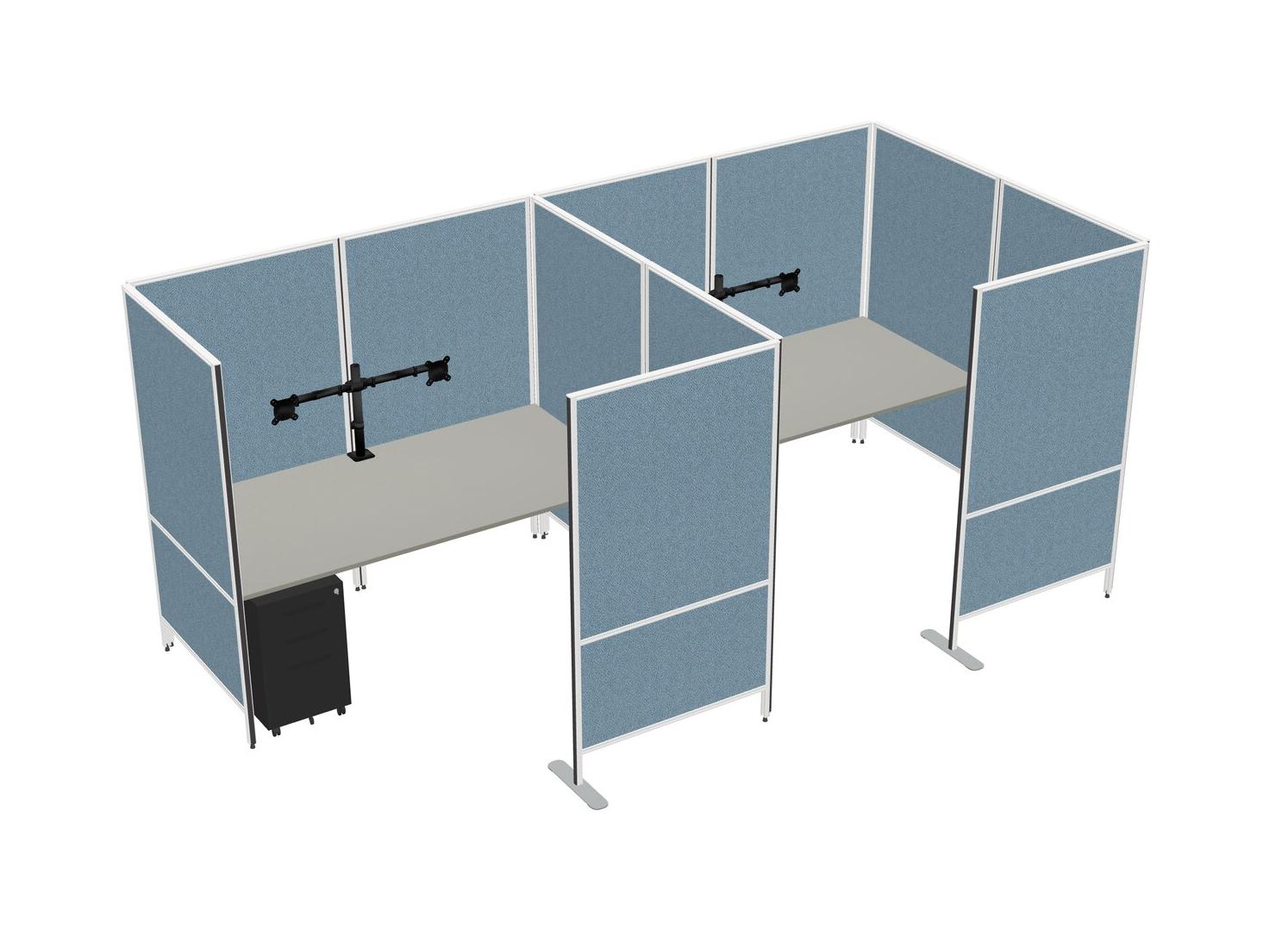 Grey Shadows Flexible Panel System With Privacy For 2 + Metal Mobile Drawers + Monitor Arm (double Arms)